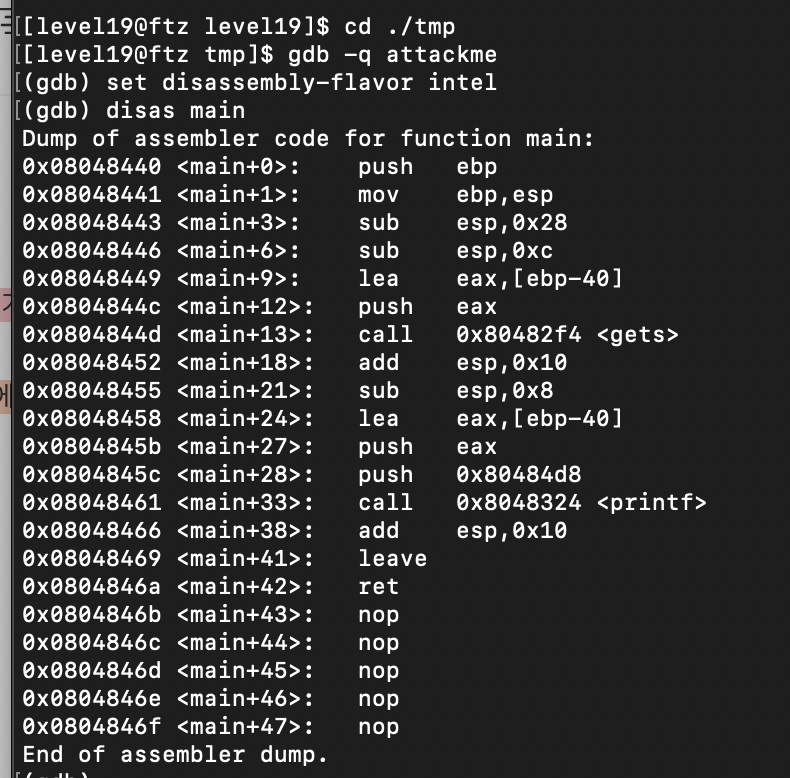 암튼 페이로드는 "a"*44 + 환경변수 주소 가 될 것이다.