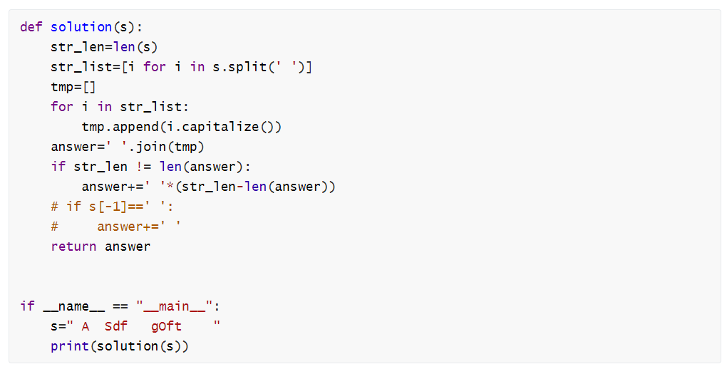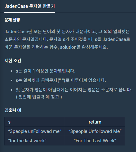 문자열 맨 앞을 추출해서 대문자로 바꾸는 작업을 capitalize() 를 활용하여 간단하게 구현하는 것이 포인트였고,