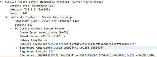 D-H 매개변수에 거명해 인증하는 server key exchange 과정 (Diffie-Hellman server params)이 추가된다.