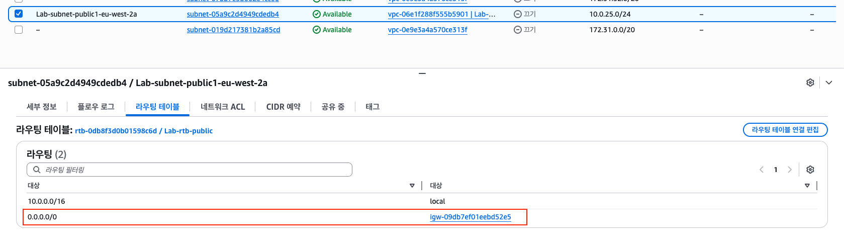 - 퍼블릭 서브넷으로 간주할 수 있는 이유?: 서브넷 라우팅 확인