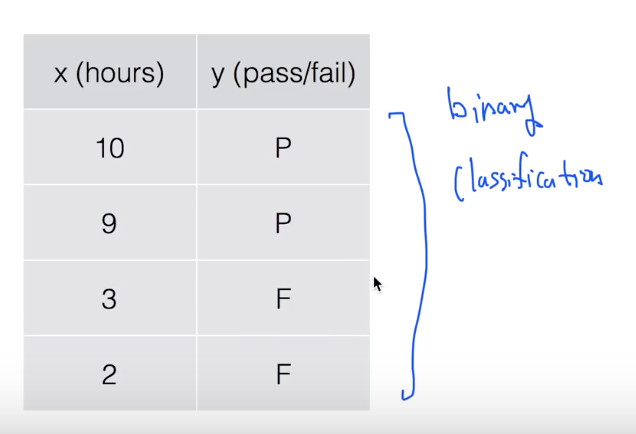 2) binary classification: 0/1 , pass/non-pass