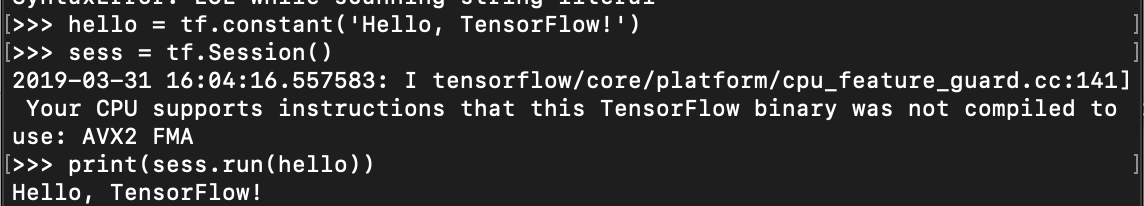 >>> hello = tf.constant(‘Hello, TensorFlow!’)