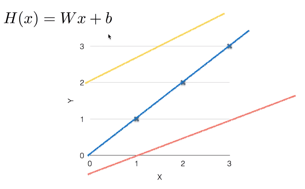 : H(x)가설, W 와b 의 값에 따라 선의 모양이 달라질 것