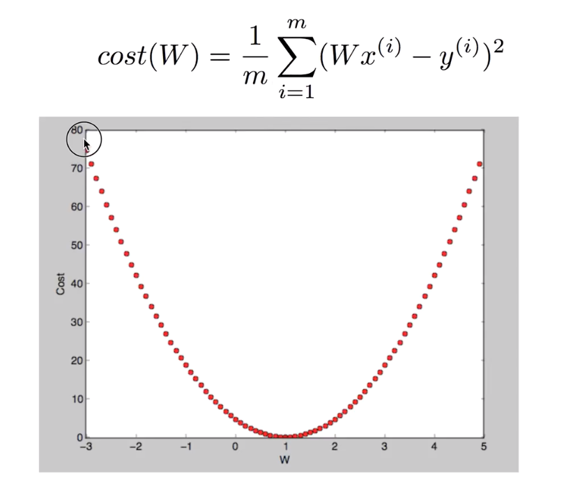 cost 를 minimize 하는 W 값이 자동으로 구해지는 것
