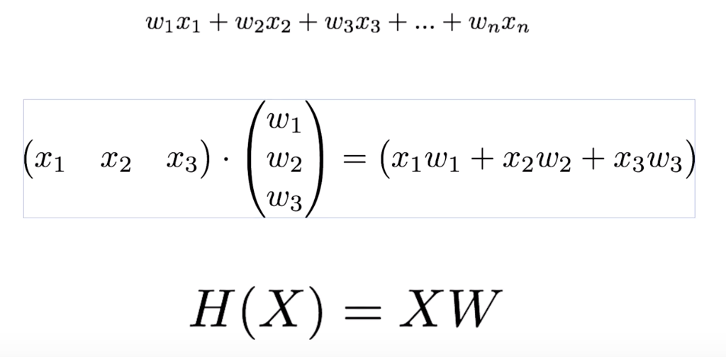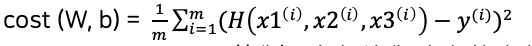 : H(x1,x2,x3) = w1x1 + w2x2 + w3x3 + b //예측