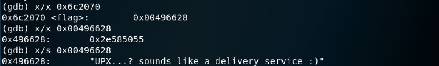 해당 주소가 0x00496628에 있음을 확인한 후, x/x로 출력해봤는데 헥사로 나오는걸 보고 string 으로 다시 출력해보았다.