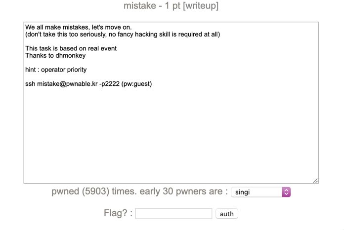 ls 로 mistake.c 가 있는 것 확인 후 열어보면