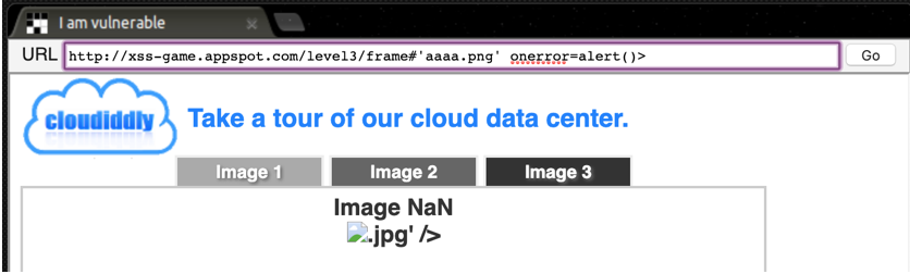 url의 # 뒤에'aaaa.png' onerror=alert()> 를 붙여 onerror함수가 실행되도록 하면,