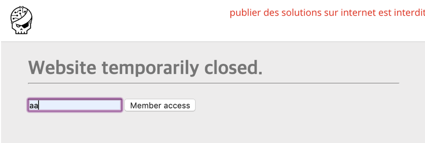 웹사이트가 일시적으로 닫혔다는 문구가 쓰여 있고 입력 필드는 입력이 불가능하게 되어있다.