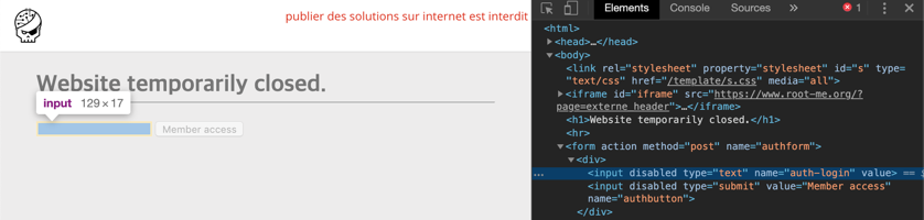 웹사이트가 일시적으로 닫혔다는 문구가 쓰여 있고 입력 필드는 입력이 불가능하게 되어있다.