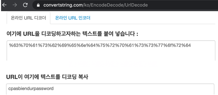 어쨋든 온라인 디코더에 pass 를 입력해 변환해보자.