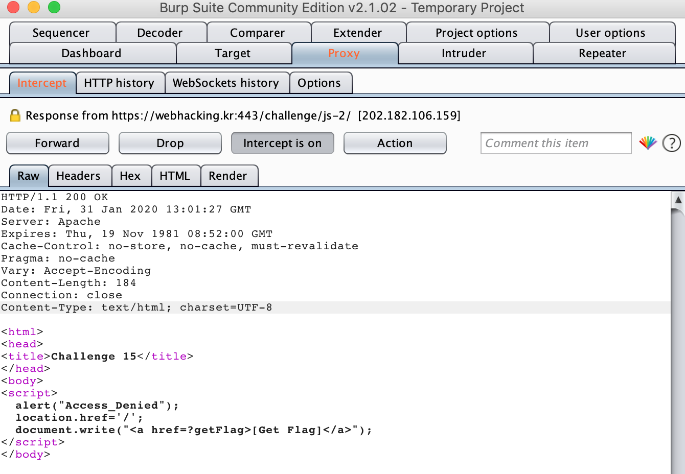 | webhacking.kr / Old-17. javascript [write-up] (0) | 2020.01.31 |