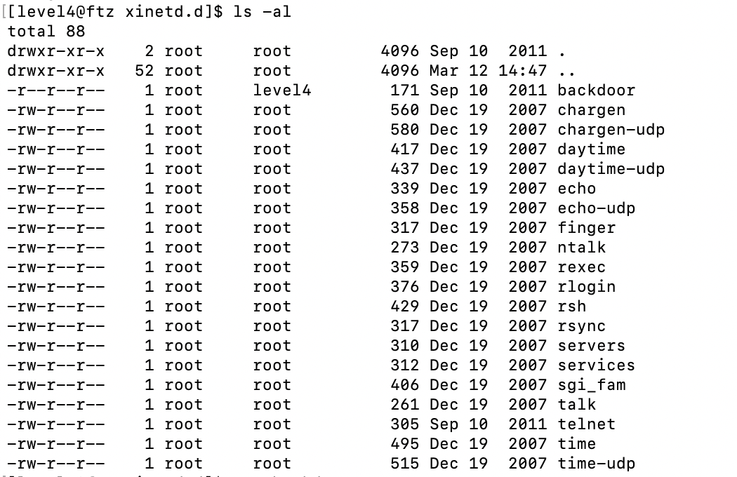 따라서 , 내가 위에 입력한 finger 서비스는 /etc/xinetd.d 아래의 backdoor에 적힌 finger 서비스가 아닌 기존의 finger 가 출력된 듯 하다.