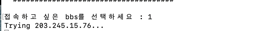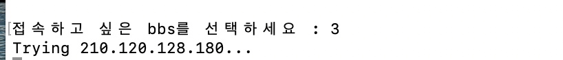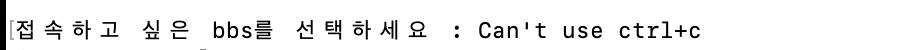그래서 접속하고 싶은 bbs 를 입력하세요 전에 ctrl+c 를 입력해보았다.