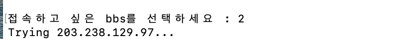 그래서 접속하고 싶은 bbs 를 입력하세요 전에 ctrl+c 를 입력해보았다.